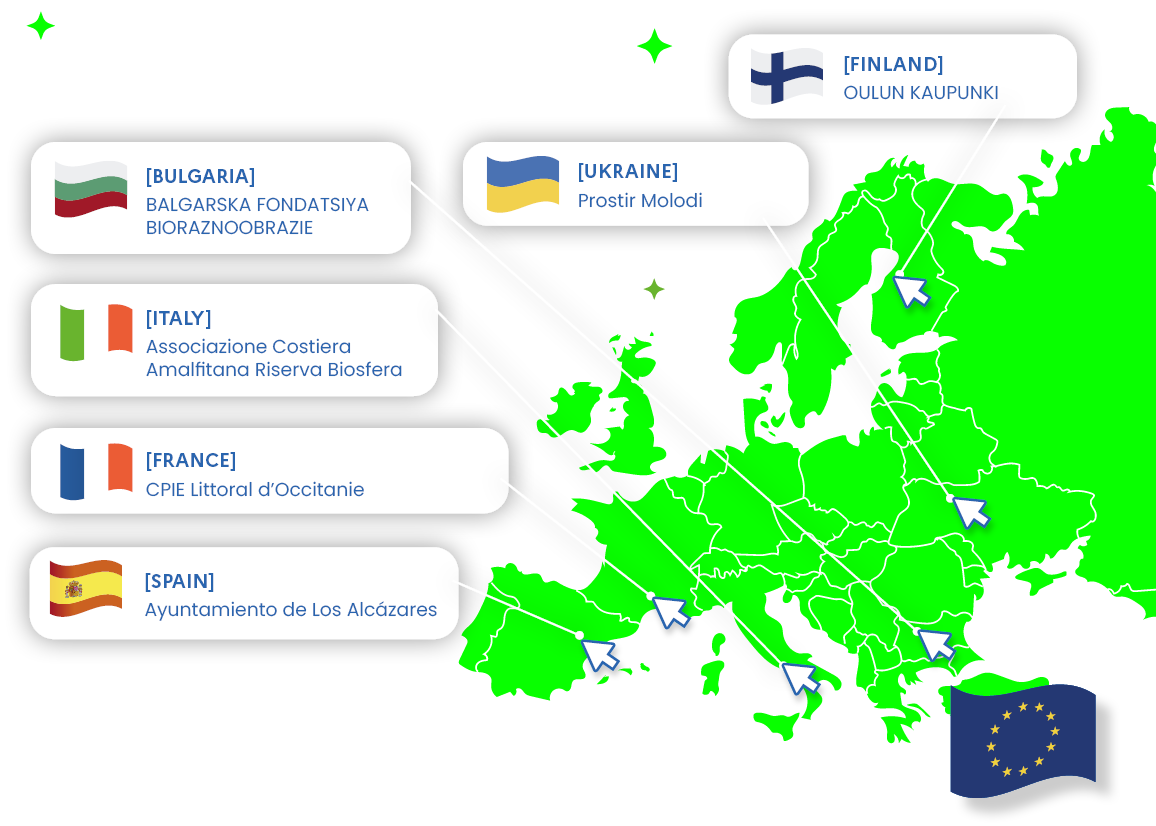 6 European countries founded the project, 2 ecoguardians per country and numerous partners